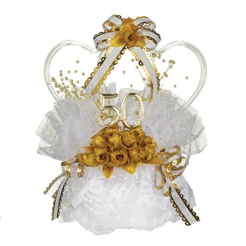 Top a cake or decorate a table at a 50th Anniversary celebration with this porcelain, heart-shaped decoration with shiny gold accents, sculpted flowers and gold-tone 50 charm. 4.5-inches tall with a 4-inch diameter base. After the party, this porcelain creation will be a keepsake to treasure. Your anniversary deserves the best - and the best comes from Hortense B. Hewitt, the leader in quality wedding and celebration accessories for more than 60 years..../ Hortense B. Hewitt Wedding Accessories, Cake Top, Porcelain, 50th Anniversary, 4.5-Inches Tall / elegant wedding cake toppers